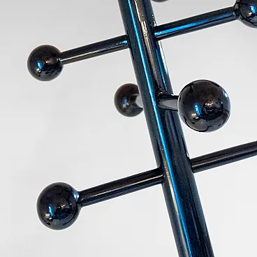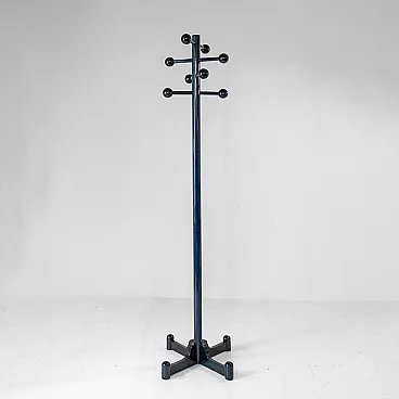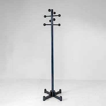 Vintage coat hanger dating back to the 1970s, with wooden structure finished with a shiny petrol green enamel.
