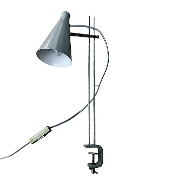 Metal Grey Desk Lamp TYPE L194, Josef Hurka for Lidokov, Czechoslovakia, 1960s. A unique table lamp created by Josef Hurka for the Lidokov factory in Czechoslovakia in the 1960s. Classic mid-century design, characterized by simplicity of form and carefully crafted details. The lamp has a modernist character, with a lacquered blue-gray base and shade. The chrome tubes, along which the height of the shade can be adjusted, are preserved in very good condition.