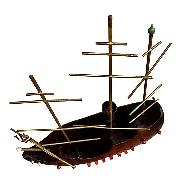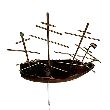 A very charming and stylish ship-shaped night light, perfect for retro, nautical, or Scandinavian interiors. Made of wood, with hand-finished details, it fits perfectly into the 1960s atmosphere. Its unique design and warm light create a cozy atmosphere in any room.
