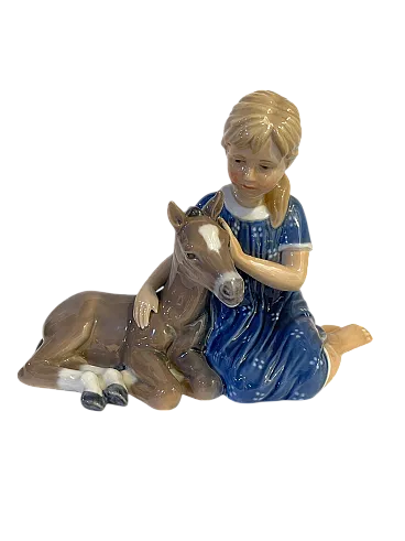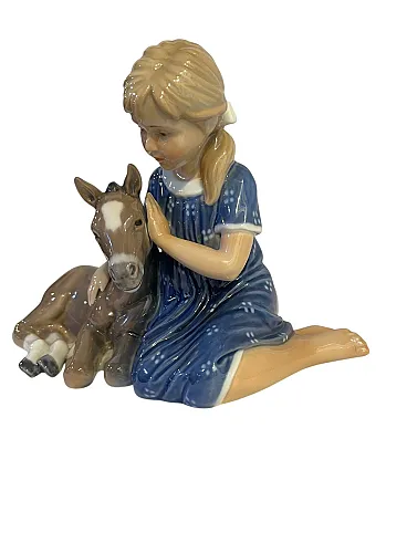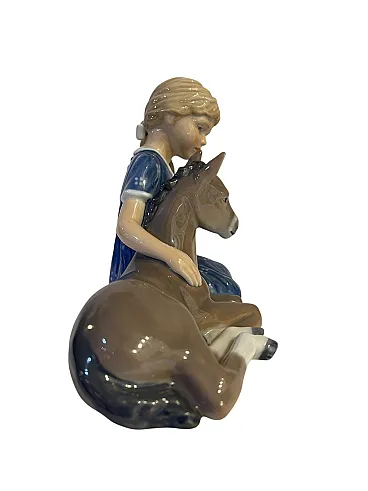 Ceramic figurine, Royal Copenhagen, Little girl with donkey, 20th century Refined ceramic figurine, polychrome, represents a little girl with a donkey. Branded on the Royal Copenhagen bottom. Excellent condition, as shown in the photo Dimensions: 24x9 cm, height 15 cm