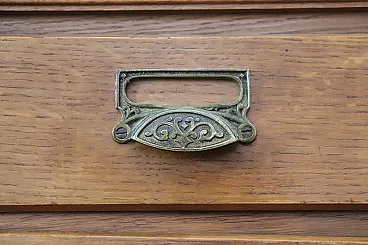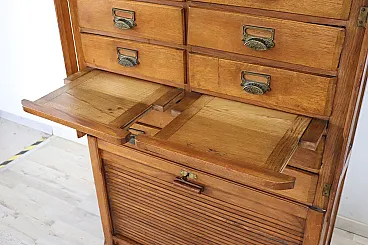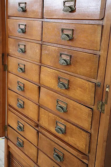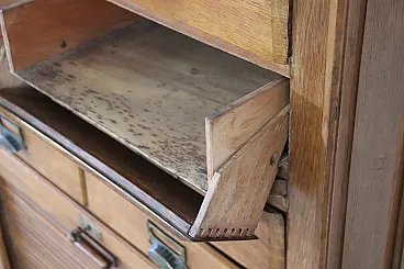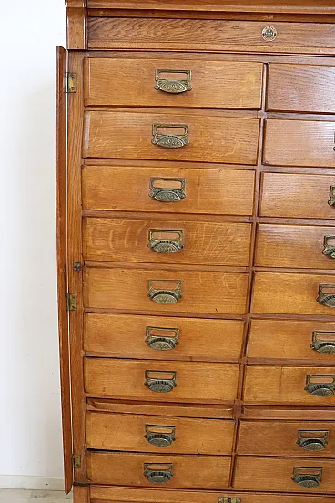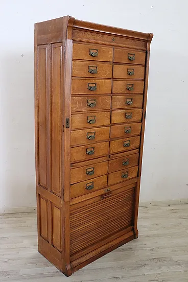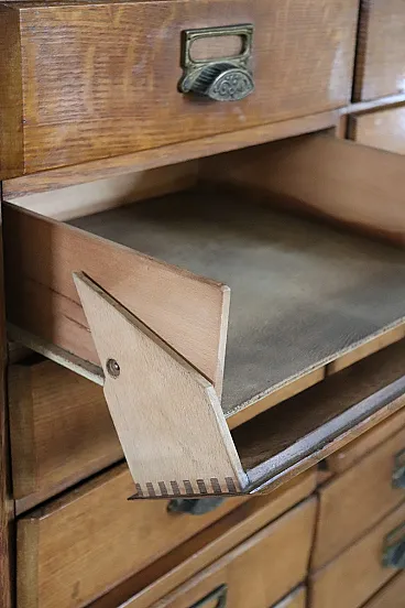 We offer this unique Italian filing cabinet from the 1920s, made of solid oak. At the top there is the original label of the manufacturer from Genoa (northern Italy).