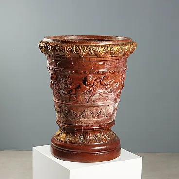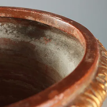 Patinated gilded terracotta vase with vegetal decorations,20th century