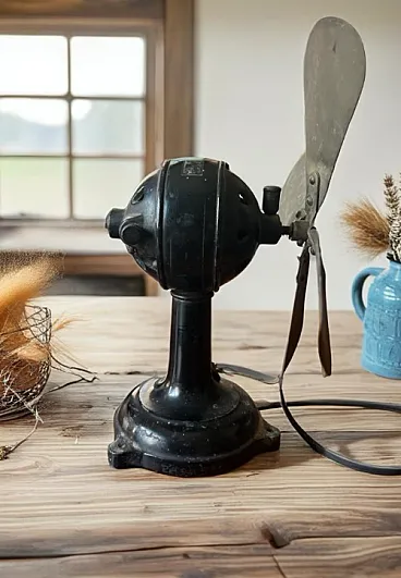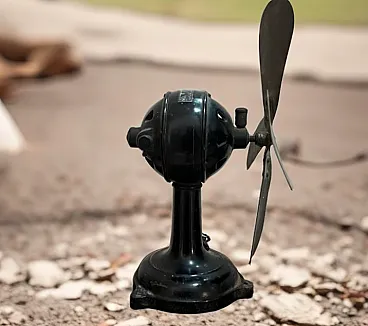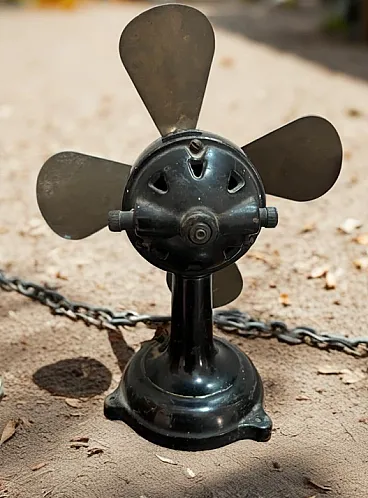 Table fan by Ercole Marelli in black cast iron, 1940s