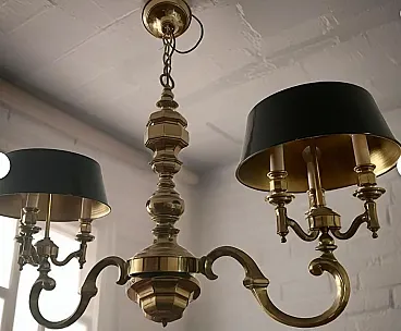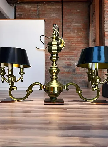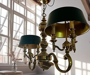 Bouillotte style chandelier in solid brass, 1970s