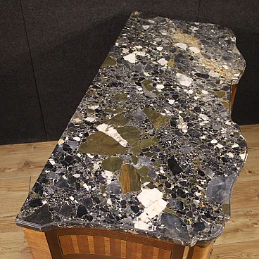 French chest of drawers from the late 19th century. Transition style furniture, wavy on the front and sides, veneered and inlaid in mahogany, walnut, maple, bois de rose and fruit wood. Dresser equipped with three spacious drawers complete with working keys and original locks. Original marble top in good condition of excellent size and good service. Bedroom or living room dresser, of beautiful size and proportion, for antique dealers and interior designers. Standing on four solid legs, furniture in good condition.