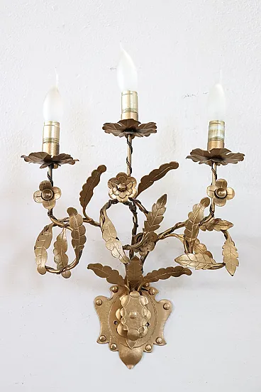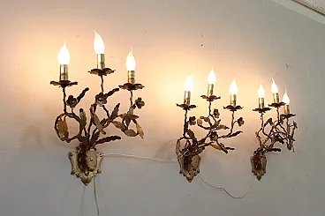 These wall lamps feature a design characterized by floral and leafy elements, with fluid lines and arms that imitate natural elements. The satin gold plating creates a delicate visual accent.
