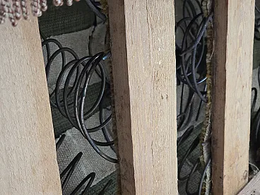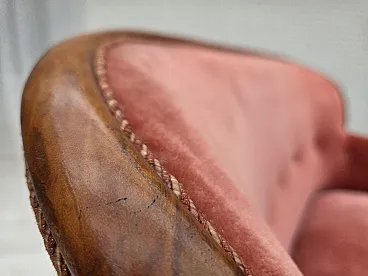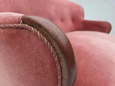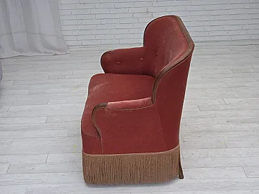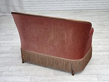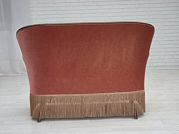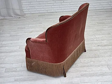 Danish 2-seater sofa, salmon pink velour, ash wood, 1930s