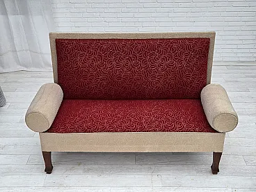 Danish sofa-daybed, red/beige wool, ash wood legs, 1950s