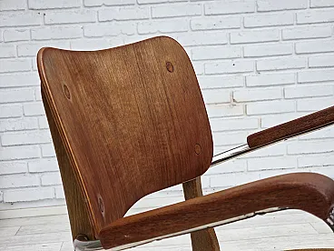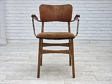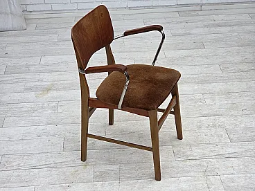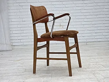 Danish velvet armchair with teak wood armrests, 1960s