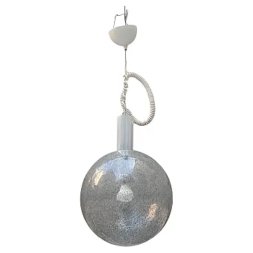 Tags: #Bilobo #AfraTobiaScarpa #Flos #LampSuspension #GlassBollicine #MidCentury #ItalianDesign #LampVintage #Lighting #ItalianLamp #DesignIcon "Sfera" designer hanging lamp, designed by Afra and Tobia Scarpa for Flos in the 1960s (circa 1968). The structure features an anodized aluminum frame with spring mechanism for inserting/removing the glass diffuser, which is decorated with internal bubbles and semi-transparent surface. The lamp diffuses a soft, ambient light, suitable for design spaces with mid-century and contemporary aesthetics. Afra Bianchin (Afra Scarpa) Born March 28, 1937, Montebelluna (Veneto, Italy). A planner, architect and designer, she worked closely with her husband Tobia from the early 1960s. Their style combined elegance, attention to materials and technical innovation, with projects in glass, furniture, interior design and architecture. Tobia Scarpa Born January 1, 1935, in Venice, Italy, son of architect Carlo Scarpa. Trained in architecture/design, with experience also working in glass (ex. Venini in Murano). He has collaborated with many Italian companies (Flos, B&B Italia, Cassina, Gavina) and has received several awards, including a Compasso d'Oro (1969) and prestigious awards in international design. Their works are exhibited in design museum collections. Flos is a historic Italian lighting company, founded in the 1960s, which brought technological and stylistic innovation to the field of lamps. He has worked with designers such as the Castiglioni brothers, Achille, and with Tobia Scarpa since his early days. Flos has helped popularize many icons of Italian lighting design, experimenting with materials and functional solutions.