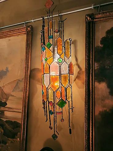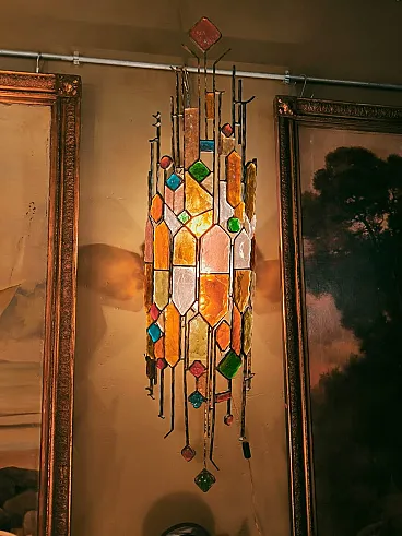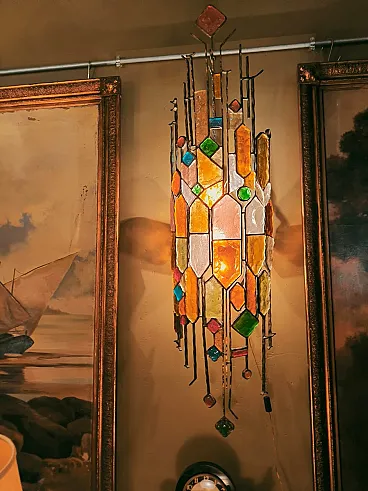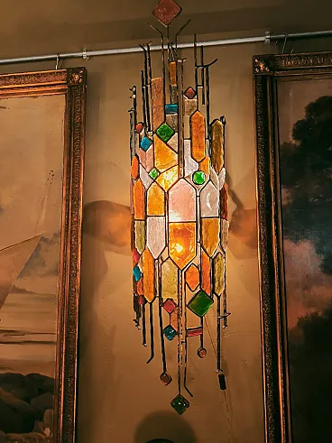 Pair of brutalist hammered glass wall lamps by Poliarte, 1970s