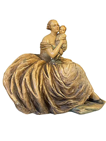 Mother with child by Guido Cacciapuoti in ceramic, 20th century