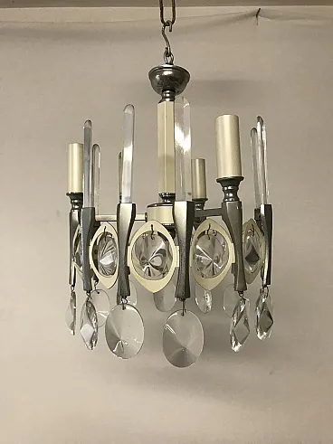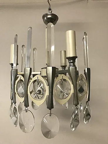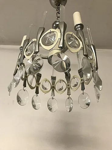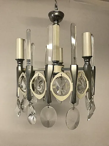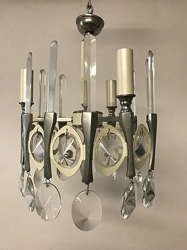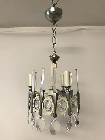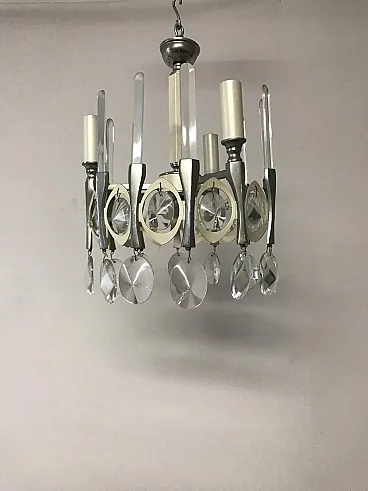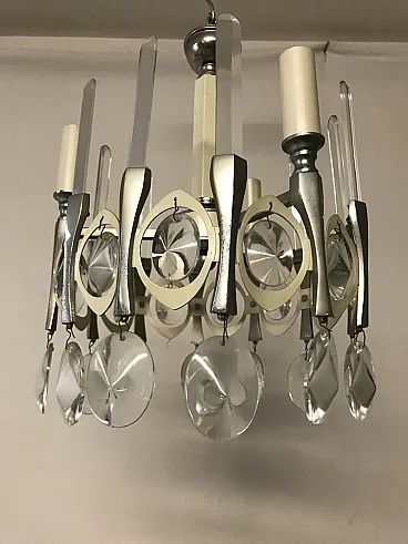 Further information on the item: Small mid-century chandelier by Gaetano Sciolari in crystal and chrome with 3 lights. This chandelier will be carefully packaged and placed in a wooden box to ensure its arrival in optimal condition. ┃