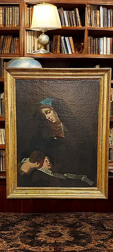 The work is clearly inspired by the famous paintings of Carlo Dolci (1616-1686), master of seventeenth-century Florentine painting, known for his intense and devotional style, characterized by faces of great finesse and a melancholic expression.