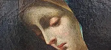 Subject: Mater Dolorosa (Madonna Addolorata). Technique: Oil on canvas. Period: 17th-18th century. School/Attribution: The work falls within the scope of Carlo Dolci's workshop, as evidenced by similar paintings and copies circulating in the antiques market and auction houses. State of conservation: The general condition of the painting is good in relation to age, with the typical patina of the time enhancing its antiquity and authenticity. The canvas and painting show a well-preserved integrity.