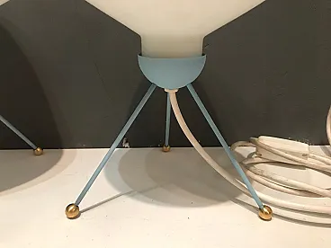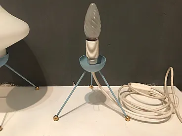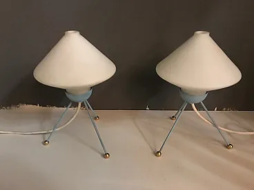 Set of 2 Stilnovo table lamps in white opal glass with light pastel blue metal structure. Height 28cm, width 18cm. Features: 1 E14 light. ┃