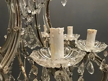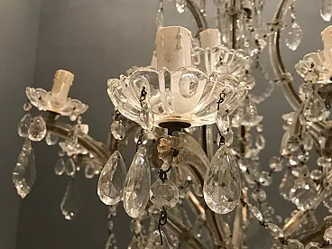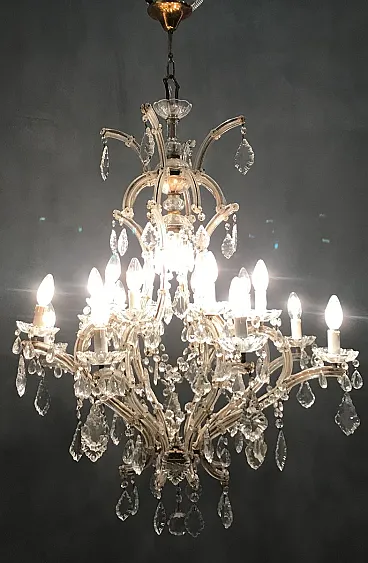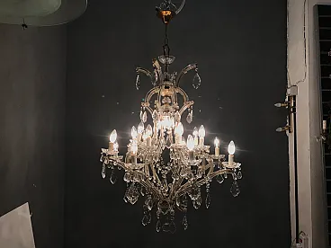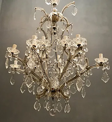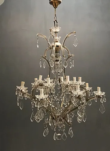 Large vintage Murano crystal chandelier Metal structure entirely covered in Murano glass 17 lights 16 E14 lights 1 E27 bulb Height including chain and rosette 128 cm Width 76 cm The chain can be lengthened or shortened as desired, please request Delivery in a wooden box to guarantee the integrity of the product. ┃