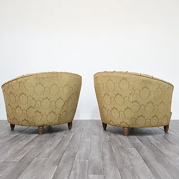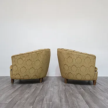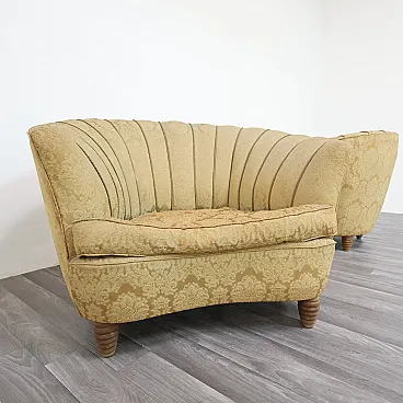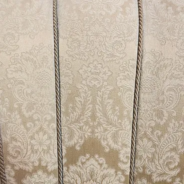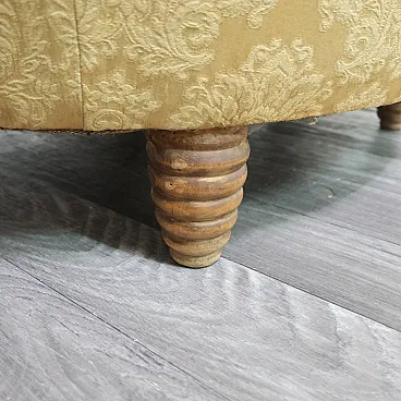 Il rivestimento originale in tessuto damascato color oro è ancora presente, ma mostra segni del tempo e richiede un intervento di restauro o reupholstery.