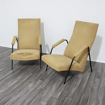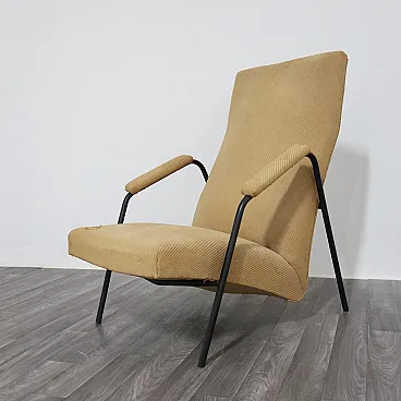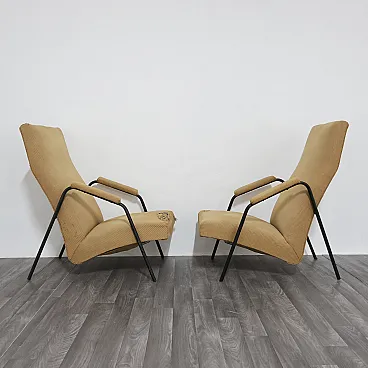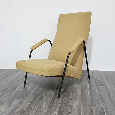 Black painted metal frame, original period fabric upholstery requiring restoration.