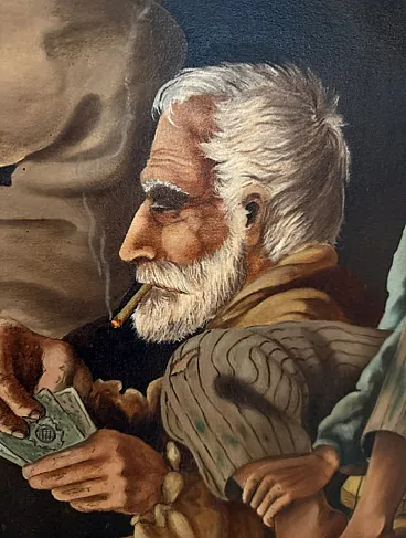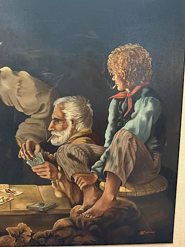 Wonderful oil painting on canvas, representing a genre scene, specifically it is a game with Sicilian cards, the author's native place, probably the game of broom, the scene takes place in a probably closed room.