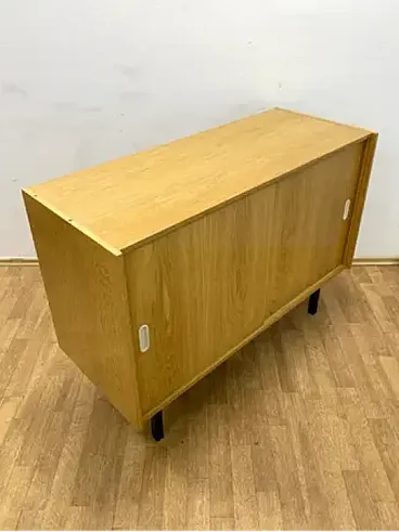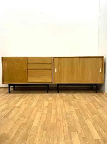 Made of veneered solid wood, it features sliding doors with Jiroutek’s signature oval handles. The chest has been carefully restored, retaining its natural tone and showing only minor traces of wear consistent with age.