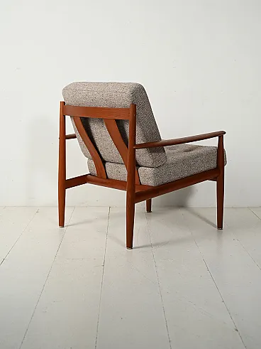 Refined Danish armchair model FD118 designed by Grete Jalk for France & Søn in the 1960s. Made of solid teak, it features a backrest with two wide and slightly inclined slats, which defines the elegance and comfort typical of mid-century Danish design.