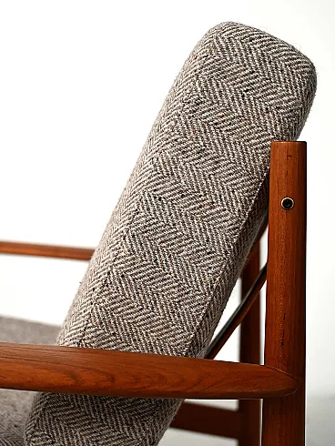 Danish armchair model FD118 by Grete Jalk for France & Søn, teak structure and cushions reupholstered in gray melange wool.
