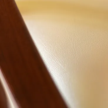 Each chair features a solid wood structure with refined sculptural lines, which showcase the high quality Italian craftsmanship typical of the era. The seats have been recently upholstered in high quality imitation leather with fresh padding, ensuring comfort and durability.