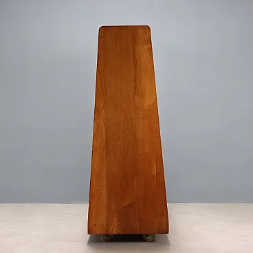 Maple veneered wooden cabinet with wheels and shelves, 20th century