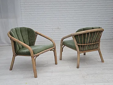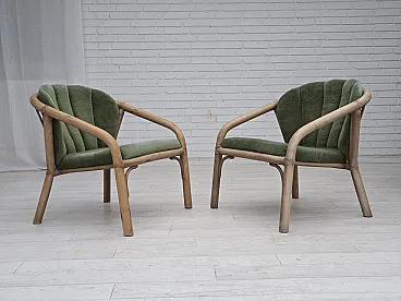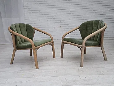 Pair of Scandinavian lounge chairs velour, rattan, 1970s