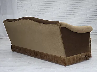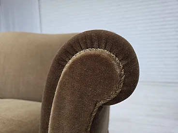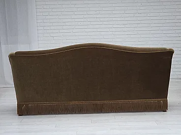 Danish 3-seater sofa, olive green velour, beech wood, 1960s