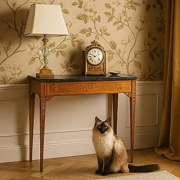 Neoclassical consolle in walnut, maple and marble, 18th century