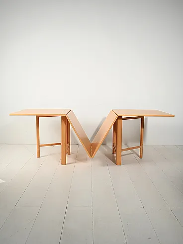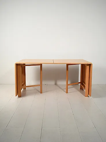 The folding system, typical of Mathsson's construction mastery, allows the table to be adapted to different spatial needs while maintaining a sober line consistent with the Swedish modernism of the period.