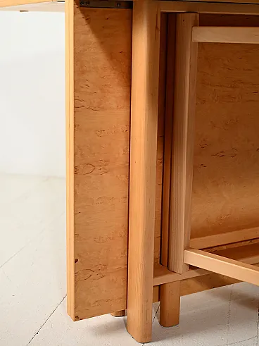 Exemplary made with a masur-birch veneered top and solid beech structure, characterized by a refined balance between functional ingenuity and formal lightness.