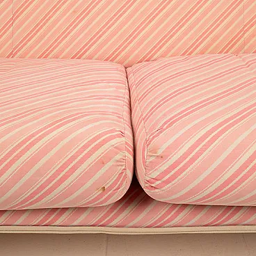 The upholstery is the original period one, in stretch fabric with diagonal stripes in shades of pink and salmon, a rare and refined color combination that retains its authenticity intact.