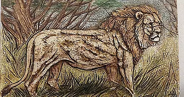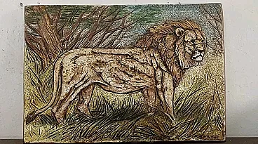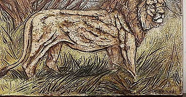 Enameled terracotta by Danilo Cartei depicting a lion, 20th century