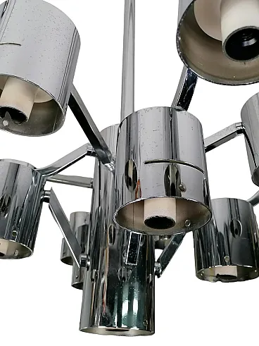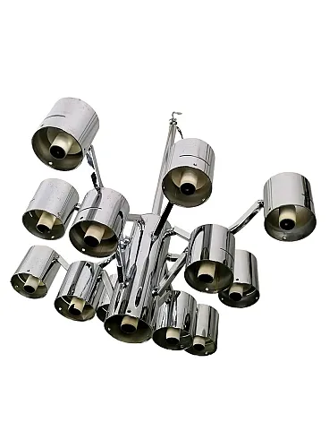 13-light steel chandelier attributed to Gaetano Sciolari, 1970s