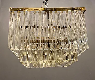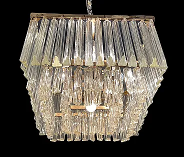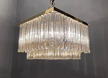Large recessed lamp with Murano glass prisms. Transparent prisms handmade in Murano in the 1970s. Because they are handcrafted, each prism may vary slightly in size and width. Polished and restored brass structure. Height 33cm Width 50cm Fitted with 5 lights Requires 5 E27 screw bulbs Price is for one piece We have 4 identical recessed lights available, please message us if you need more than one. New wiring installed compatible with UK, Europe and USA. ┃