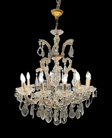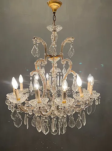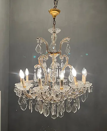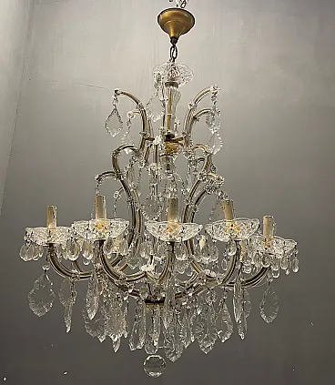 Large crystal chandelier from the 1950s Murano glass structure Height without chain and rosette 91 cm Height with chain and rosette 110 cm Width 76 cm Equipped with 12 lights Requires E14 bulbs. ┃