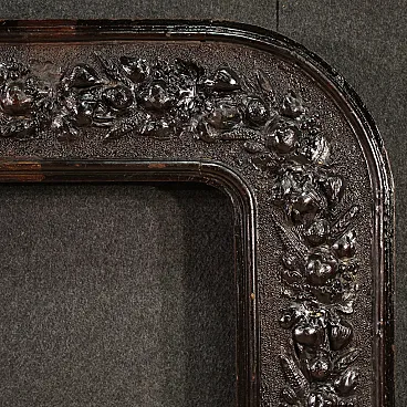 Italian frame from the late 19th century. Furniture in wood and plaster richly sculpted and chiselled with good quality flower and fruit decorations. Beautifully sized and impactful frame that can accommodate a painting or mirror with the following maximum measurements: H 65 x W 85 cm (rear recess).