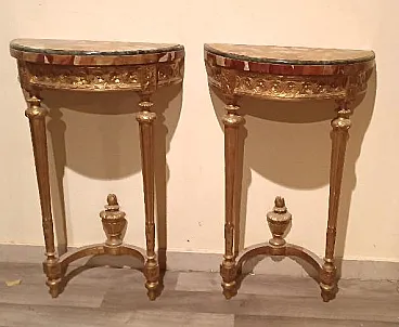 Pair of Louis XVI style gilded wooden consoles, late 19th century