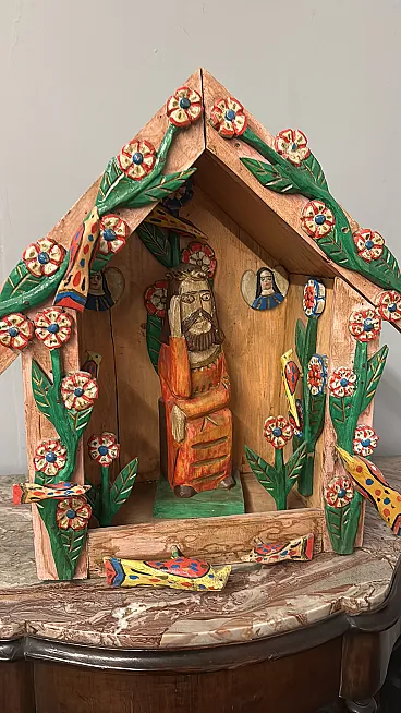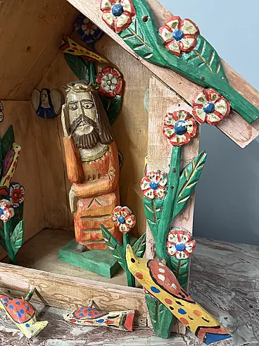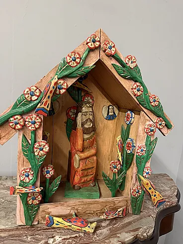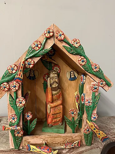 Contemporary work in painted wood, Hut with Jesus, 2000s