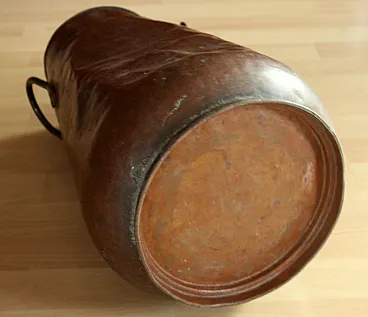 Hammered copper umbrella stand with metal handles, 70s
