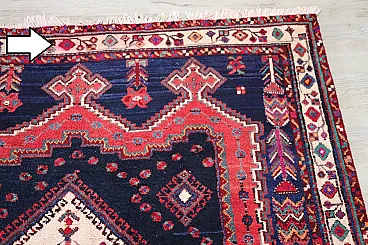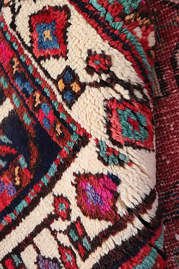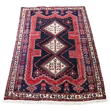 A carpet that would enhance any room in the house. Considering this is a used vintage rug, it is in good condition. Please note a small red discoloration visible on one edge (see photo details), possibly caused by washing.