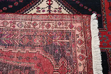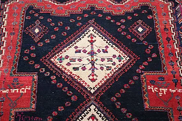 Its intricate decoration features predominantly geometric motifs, culminating in a beautiful central medallion. The main colors are red and midnight blue.