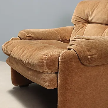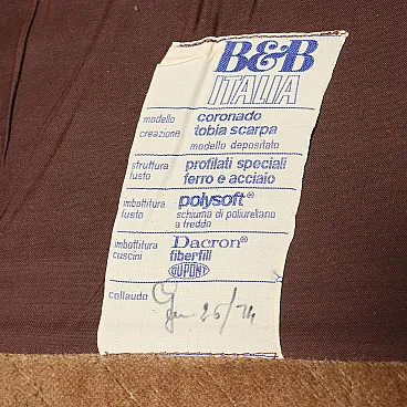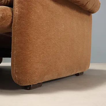 Pair of armchairs designed by the Scarpas with foam padding and upholstery in original period fabric in shades of brown.