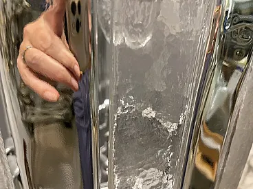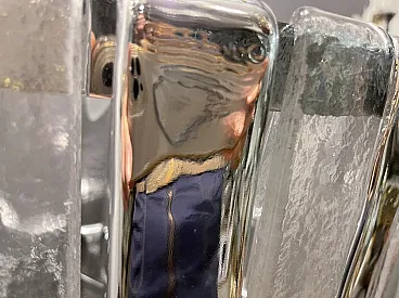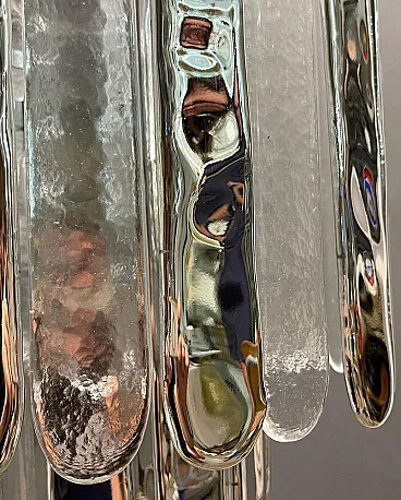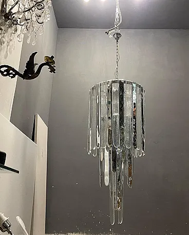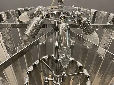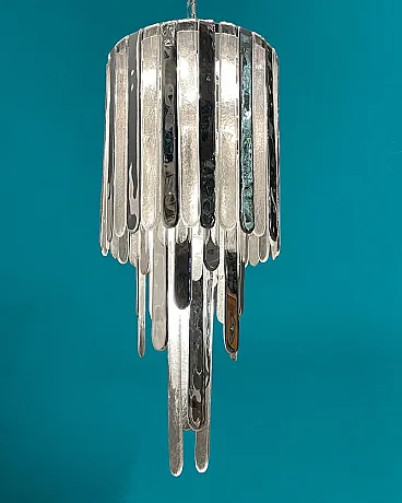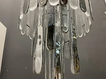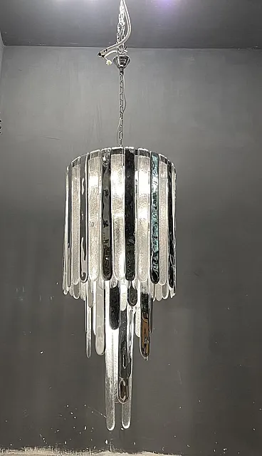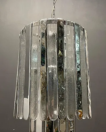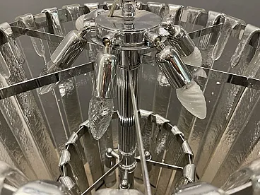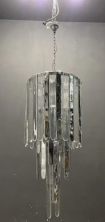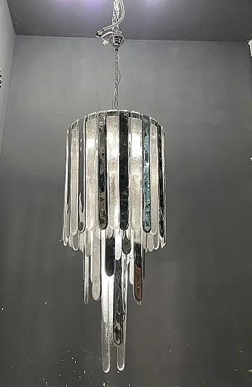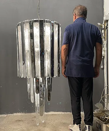 Extra large Murano glass chandelier from the 1970s. Consisting of 51 pieces of Murano glass, some of which are transparent and others subjected to a special chrome finish to reflect the light. Mouth blown Murano Glass Height without chain 120cm Height with chain 180cm Width 56cm Features 9 1E lights 27 bulbs 8 E 14 bulbs New wiring installed compatible with UK, Europe and USA Delivery in a wooden crate to ensure safe arrival. ┃