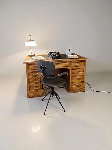 Oak executive desk with leather top, 1940s