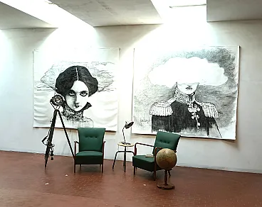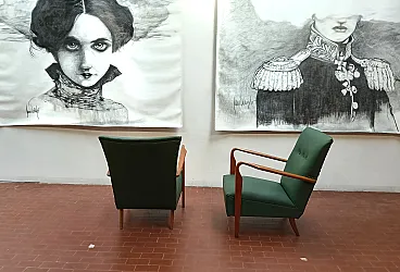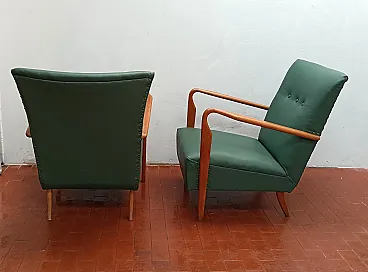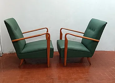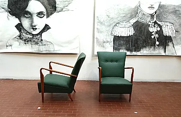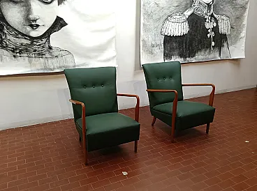 Pair of armchair 401 by Cassina walnut, calfskin, 50s