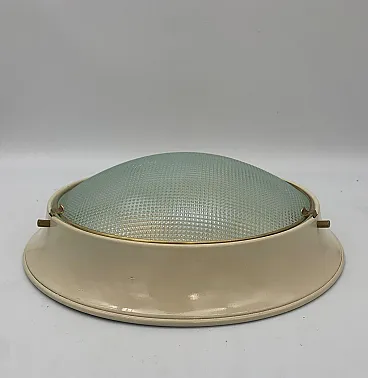 Ceiling or wall lamp, characterized by a sober and functional design typical of the style of F.Arte. It consists of a circular metal base with an ivory white finish, slightly curved outwards.